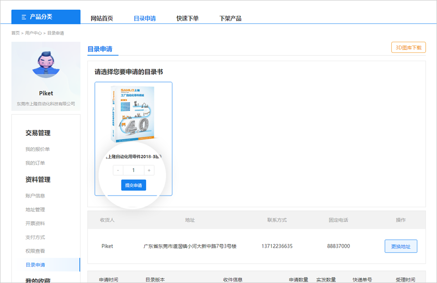 點(diǎn)擊首頁(yè)的“目錄申請(qǐng)”進(jìn)入該頁(yè)面