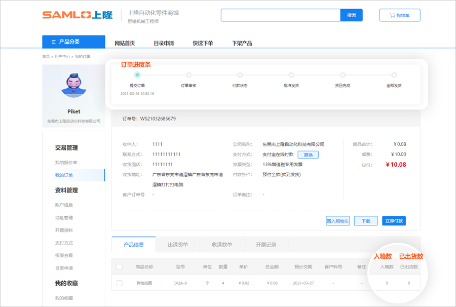 1.進度條、入箱數(shù)(表示已經(jīng)備好的貨物數(shù)量)、已出貨數(shù)